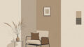 落ち着いた色合いで統一されたナチュラルテイストの室内空間を描いた、やさしく穏やかな雰囲気のインテリアイメージです。リビングシーンやライフスタイル表現、ブログや資料のビジュアル、サムネイルやデザイン制作など幅広い用途に使いやすく、温もりのある暮らしを演出できる背景素材です。