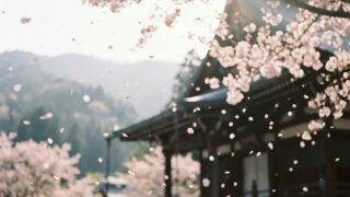 緑に囲まれた日本庭園の橋と水景を描いた背景素材。落ち着いた自然美と静寂な雰囲気が、和風デザインや癒し系コンテンツに最適です。