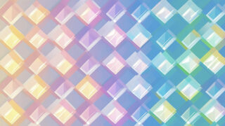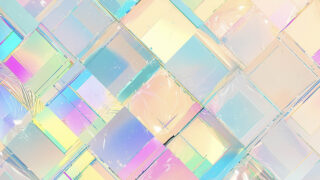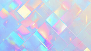 光が重なるホログラムタイルデザインの背景素材を紹介。透明感とパステルカラーが美しく、抽象的で未来感のあるビジュアル制作に最適なデジタル背景素材です。